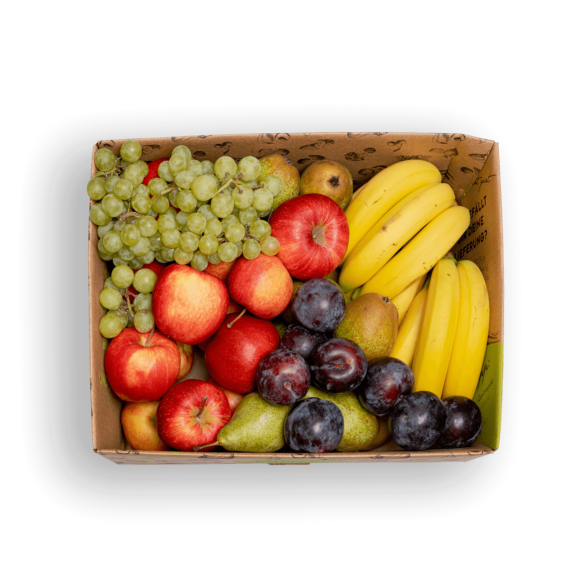 Perfekt für den Snack zwischendurch: Saftige Trauben, knackige Äpfel und reife Bananen. Je nach Saison variiert die Zusammenstellung. So seid Ihr laufend mit den verschiedensten Vitaminspendern versorgt.